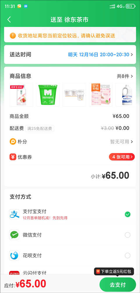 微信支付、支付宝、货到现金支付、货到刷卡付款,任你挑选,怎么方便怎么来!