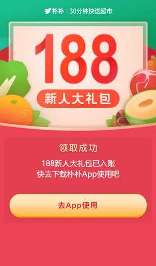 1、朴朴超市已升级!送您188元新人礼,新用户即享1元新人专属礼包;