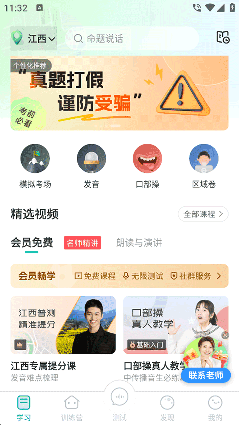 声母、韵母、声调发音课程,还有视频教学课程,真人老师发音指导私教服务,选择适合自己的学习课程,学好普通话。