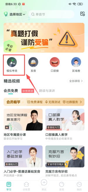 普通话学习怎么进入练习模拟考试