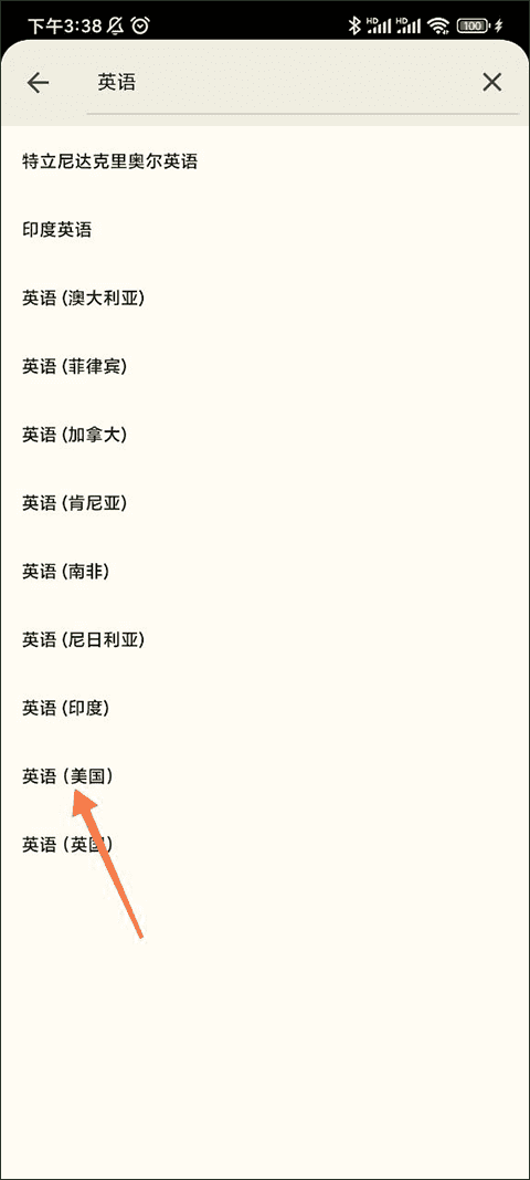 4、在搜索框内输入英语后选择下方的英语(美国)