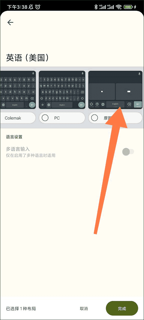 点击设置会跳转到手机键盘设置,点击将谷歌键盘打开即可返回;