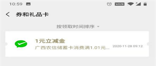 3、在微信“我“->”卡包”->”券和礼品卡”查看领取的代金券。