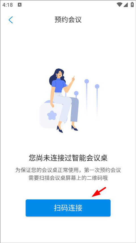 2、为保证用户会议桌正常使用,第一次预约会议需要扫描会议桌上的二维码进行连接;