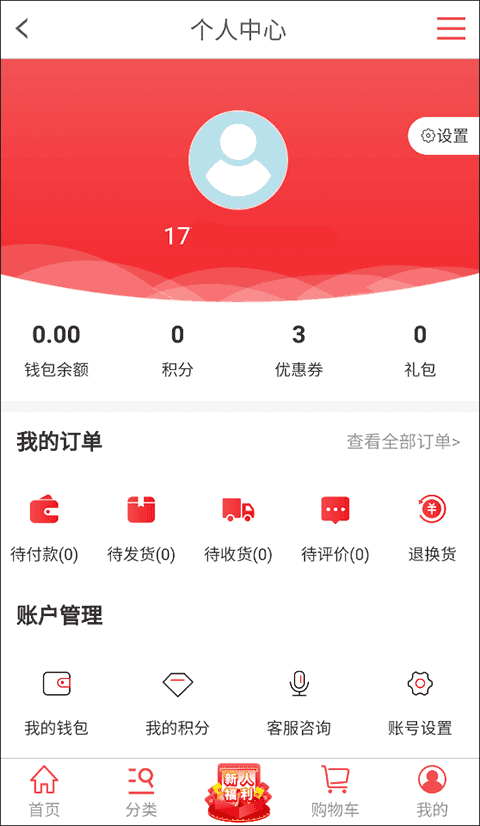 1、首先,在我的界面找到并点击账号管理中的“客服咨询”功能按键;