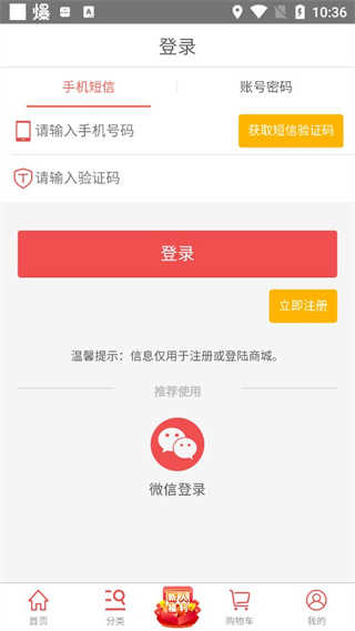 1、首先需要运行购时惠商城app,然后,进行注册登录
