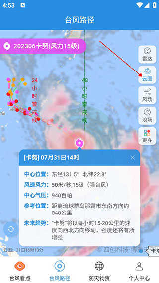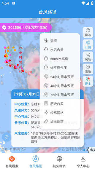 2、实时查询台风位置和预报趋势,数据快、数据全。