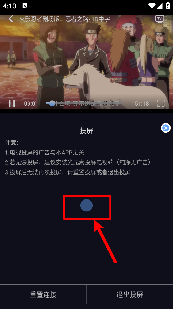4、如图所示,进行搜索连接投屏设备,完成连接后就可以开启投屏播放啦。