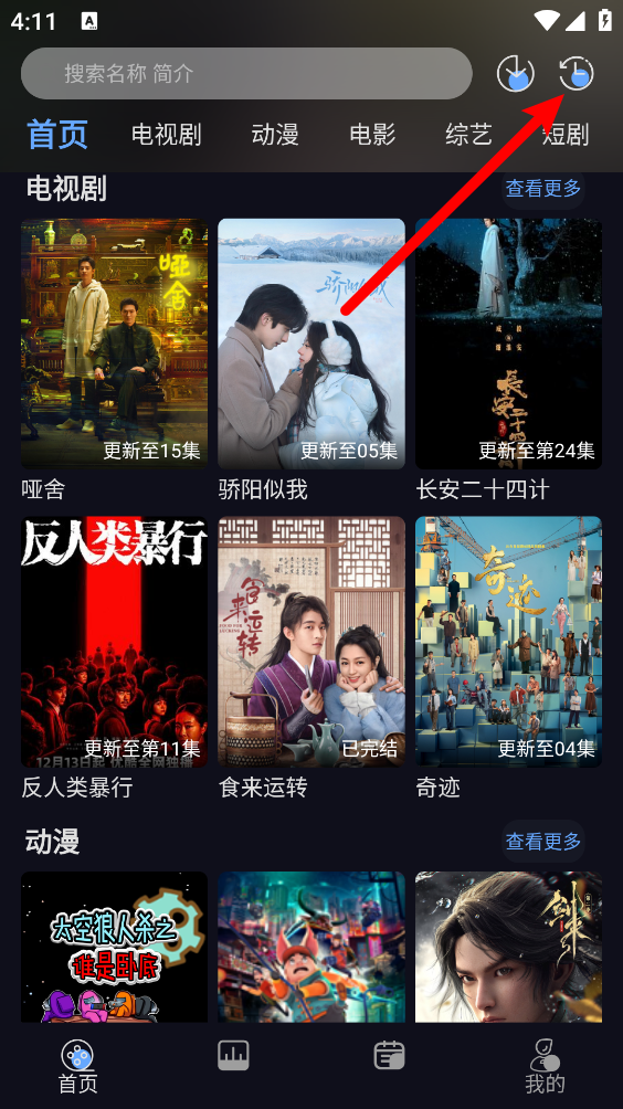 3、完成后一键打开进入播放详情页点击"tv"标志。
