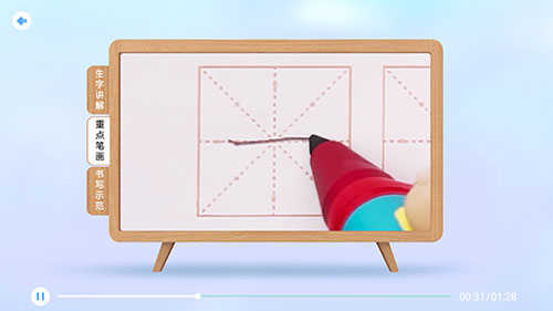 助力洪恩智能写字课,通过视频学习、互动练习、书写练习和书写报告等科学环节的设置,精心搭配专业的讲解内容,快乐学习每一天;