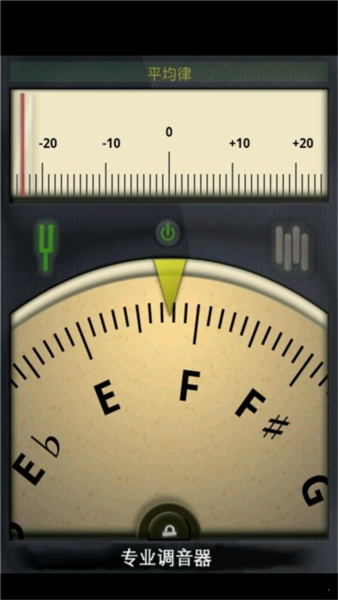 “自动调弦模式”实时监测音高,通过视觉观看仪表盘的偏转确定音的高低。指针指向原点则音准无误,偏右则音高,偏左则音低。您可点击右上角的帮助按钮,查看如何调整乐器和演奏技巧,以使音维持在准确音准的状态。