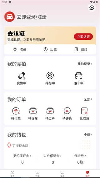 将钱包打开查看过户保证金、竞拍保证金等信息掌握账户余额;