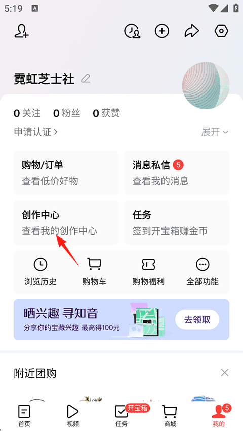 5、作品的具体收益可以点击“创作中心”的“收益提现”查看。