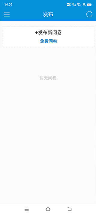 1、点击底部导航栏中间的“发布”,再点击“+创建新问卷"。