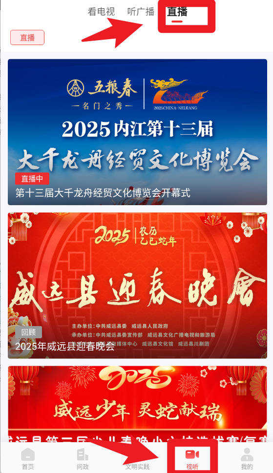 5、在视听频道,提供电视、广播和本地活动现场直播,用户可随时点击进入观看,掌握最新文化盛事与实时动态。