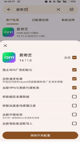 启动AdClose模块,选择并点击应用列表,启用相应的Hook功能。