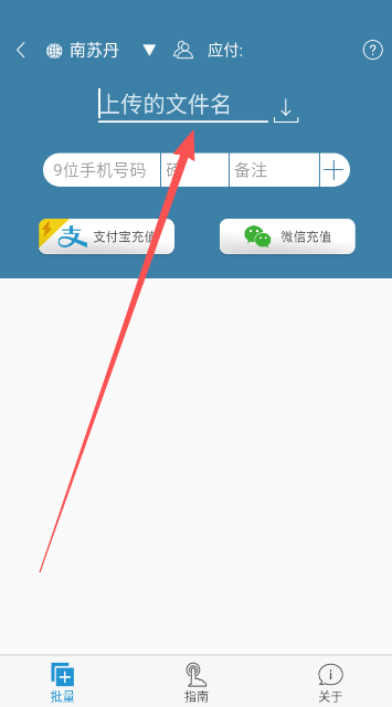 2、点击输入你要上传的文件名称,然后通过支付宝或是微信的方式完成批量充值的操作。