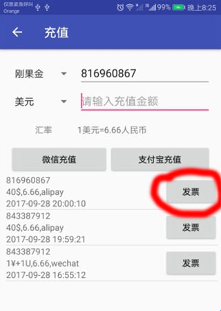 2、点击充值就可以进入充值界面,选择充值的金额,可以选择微信或者支付宝付款,充值完成会会给用户开发票