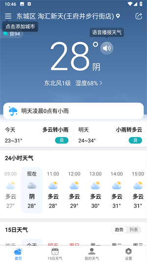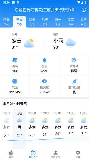 2、点击15日天气,可以直观看到15天内天气的变化。