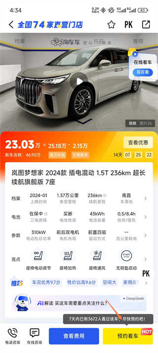 4、找到之后可以点击预约看车或者在线质询