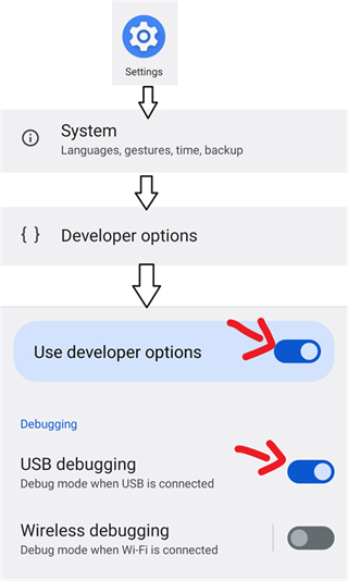 通过无线调试启动适用于 Android 11 或以上版本。这种启动方式无需连接电脑。由于系统限制,每次重新启动后都需要再次进行启动步骤。