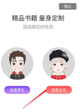 1、打开软件,选择自己的性别,它会以此来为你推荐小说;