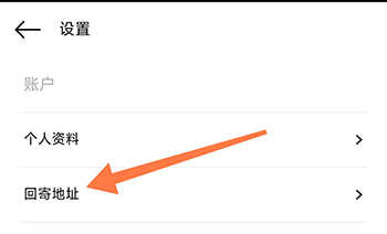 2、在设置页面中,点击回寄地址;