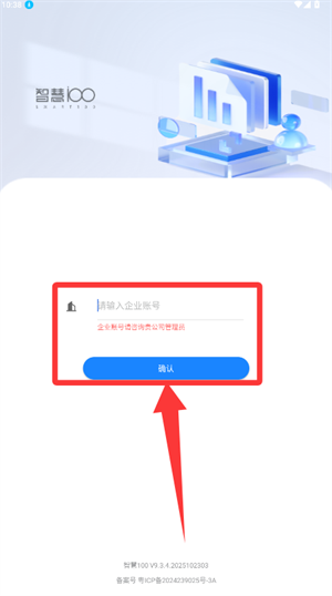 2、在企业账号输入框中填写信息,点击确认按钮进行登录。