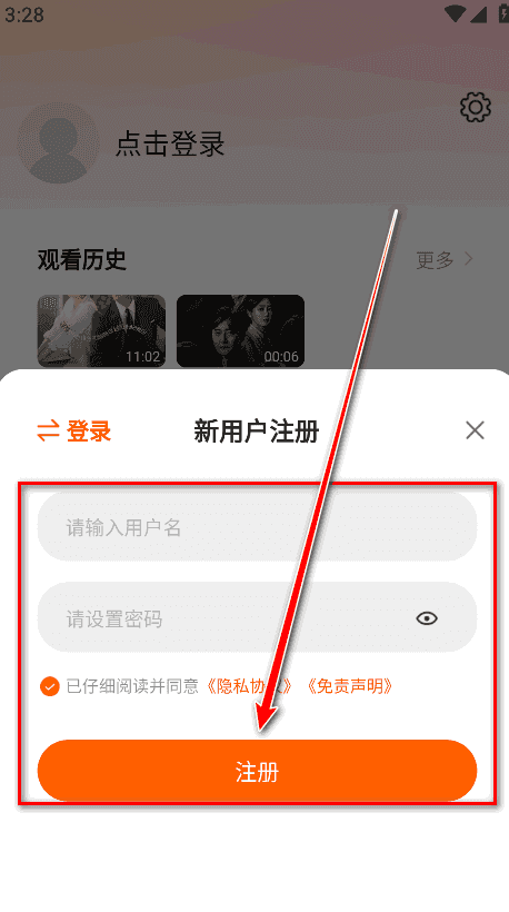 3、老用户可以直接登录,新用户就点击“注册”;