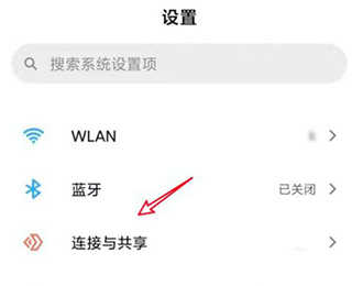 打开手机上的设置,选择连接与共享。