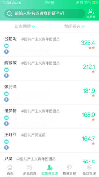 3、志愿者管理:可对本组织志愿者进行有效管理;