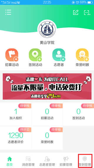 2、签到活动:创建签到活动,通过审核后,便可对志愿者的签到签退进行记录;