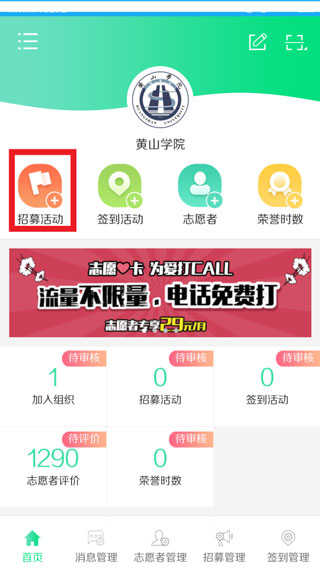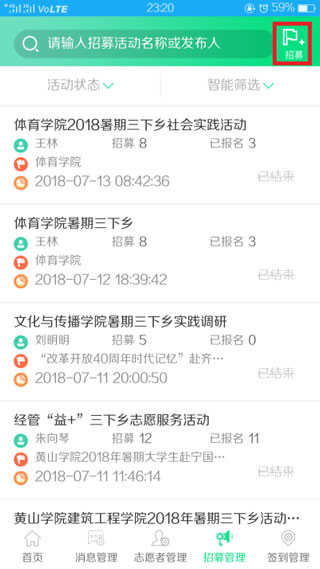 1、招募管理:创建公益活动,通过审核后,志愿者便可在“志愿汇”用户端了解报名活动;