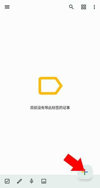 1、下载google keep,点击右下角的【+】号添加新笔记