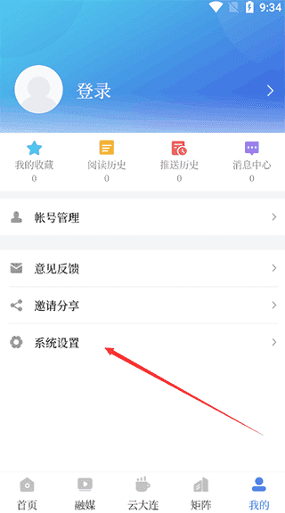 1、首先在本站下载安装好app,然后我们点击进去,之后再点击最又下角的“我的”,然后我们可以看到个“系统设置”,我们点击进去。