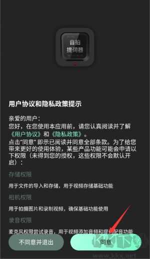 1、首次打开应用时,界面显示用户协议与隐私条款,阅读后点击同意进入主页面