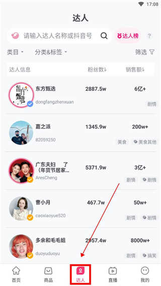 1、下载好app后,点击进入,用户可以在【达人】板块直接查找主播。