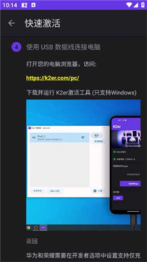4). 最后一招,电脑激活后,拔线(此时激活失效),然后在手机中点K2er主界