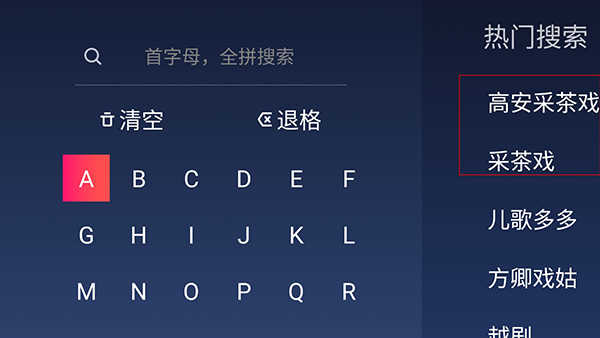 2、大家可以通过输入视频的名称或者演员的名字、首字母拼音,来查找相关的视频来看,也可以点击查看旁边的热门搜索