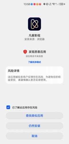 2、系统发现恶意应用,可能是误判,需要点击“了解风险”。