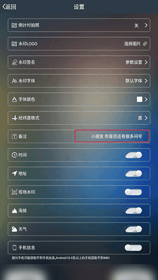 现在返回拍摄页面,就可以看到自己的备注内容了,若是想要修改,可以点击蓝色标记按钮
