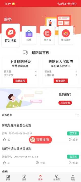 4、选择服务页面,你可以在这里进行提问,或者直接留言,非常方便。