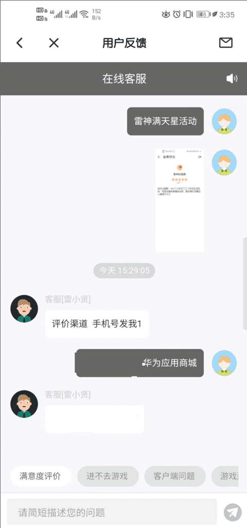 打开雷神APP→点击【帮助与反馈】→点击【人工客服】→发送截图→客服发放限量时长CDK。
