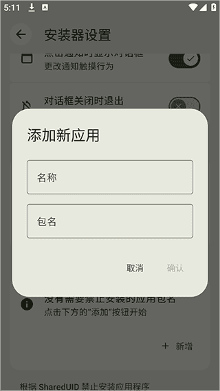 4、也就是将应用的名称和包名进行新增,一切就绪后即可点击你预设的安装包进行安装即可,此时就不会使用系统自带的安装器进行安装,而是直接使用InstallerX Revived进行安装了