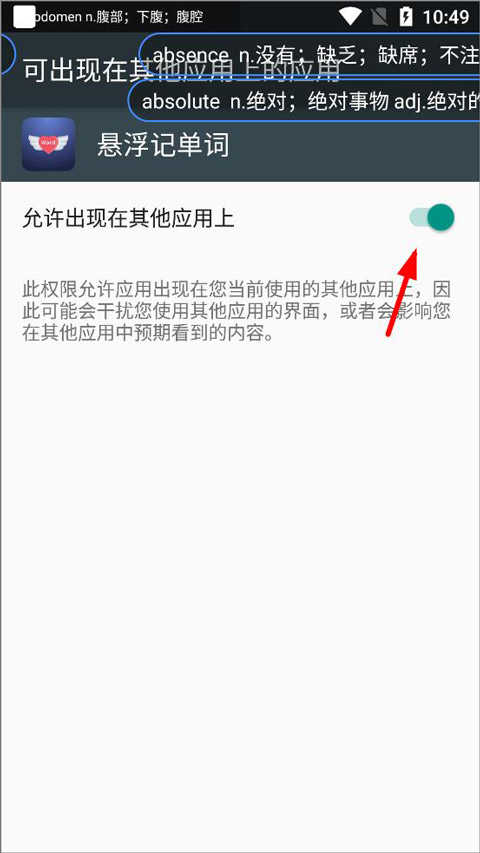 4、点击开启静态/动态弹幕,并下来打开悬浮权限设置即可在手机设置悬浮单词。