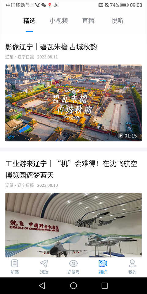 1、用户打开app,通过点击底部导航栏中的【视听】进入直播页面中就可以看直播了。