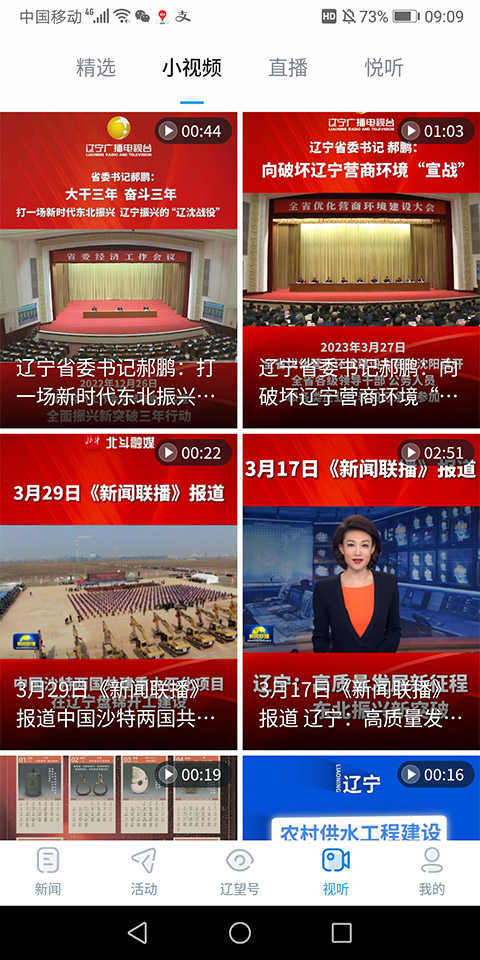 4、小视频功能页面中可以对历史重点直播内容进行回顾。