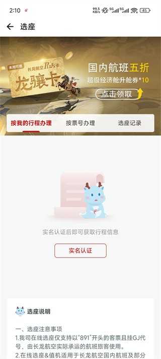长龙航空值机选座教程