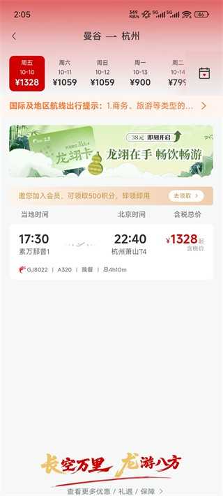 长龙航空是一款为广大游客提供的手机查询航班信息服务软件。该软件有着强大的功能,可以帮助用户在线查询全国各个地方的航班信息,用户能够轻松的订购各种时候的出行机票,并且还有非常多特价机票,用户可以轻松购买到便宜机票,享受出行优惠。软件还有很多特价机票和机票优惠服务,让用户们享受到更高性价比的出行旅程,降低出行成本,提高出行体验。