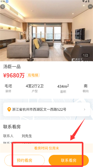 3、选定心仪房源后查看详情,支持预约看房或联系业主。